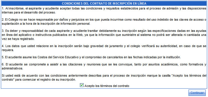 PASO 1. Lea cuidadosamente y de clic en Acepto los términos del contrato, luego presione el botón Continuar.